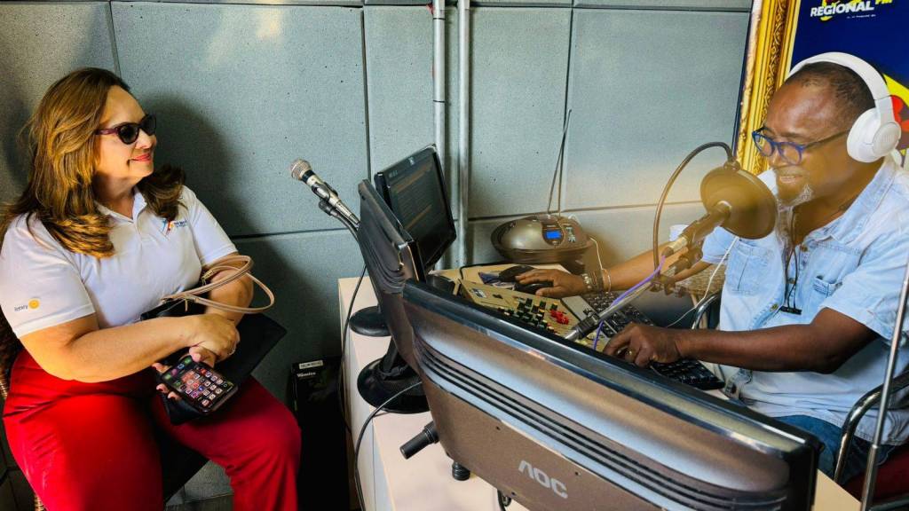 Entrevista pelo radialista Carlos Poeta, momento em que a governadora falou dos objetivos da sua visita aos clubes de Perdizes.