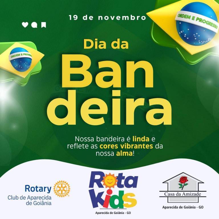Hoje celebramos um dos símbolos mais importantes do nosso país: a Bandeira do Brasil, que representa nossa história, identidade e o orgulho de um povo que acredita em um futuro melhor.